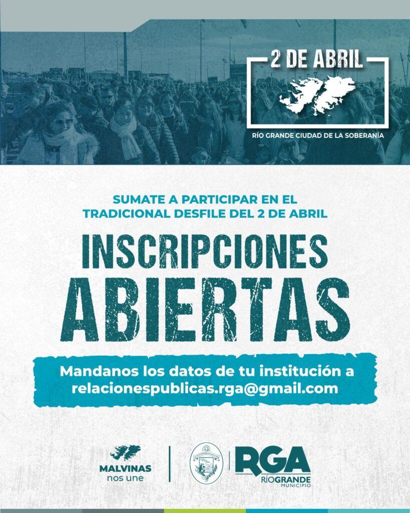 🇦🇷 El Municipio de Río Grande dio inicio a la convocatoria para todas las instituciones que deseen formar parte del Tradicional Desfile del 2 de Abril, un evento que late en el corazón de nuestra ciudad.