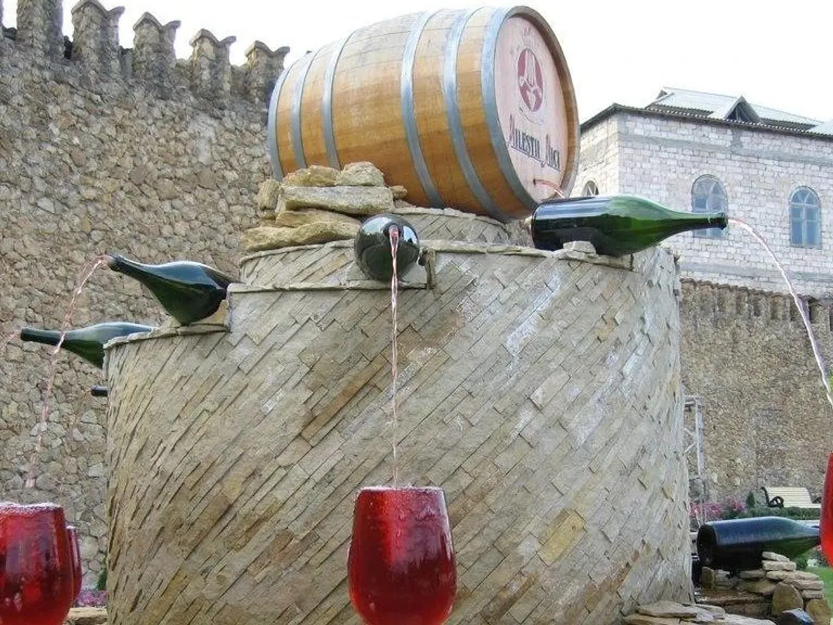 🏺 La iniciativa pertenece a la bodega Dora Sarchese, que decidió transformar una idea casi de fantasía en una postal real: una fuente con forma de barril, conectada a un depósito subterráneo de unos 3.000 litros de vino.