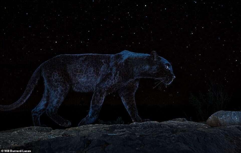 🐆 Un especialista en fotografía de fauna silvestre acaba de presentar al mundo uno de los registros más asombrosos de los que se tenga memoria: la figura de un extraño leopardo negro desplazándose bajo la inmensidad de un cielo estrellado en el continente africano. Esta captura, que ya recorre el planeta, representa un hito no solo por la belleza estética de la composición, sino por la extrema dificultad que supone hallar a este animal en su hábitat natural.
