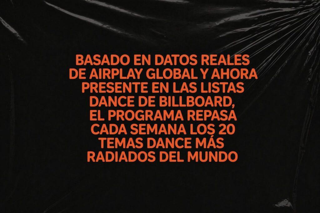 - Contenido: Top 20 de música dance basado en datos globales de airplay